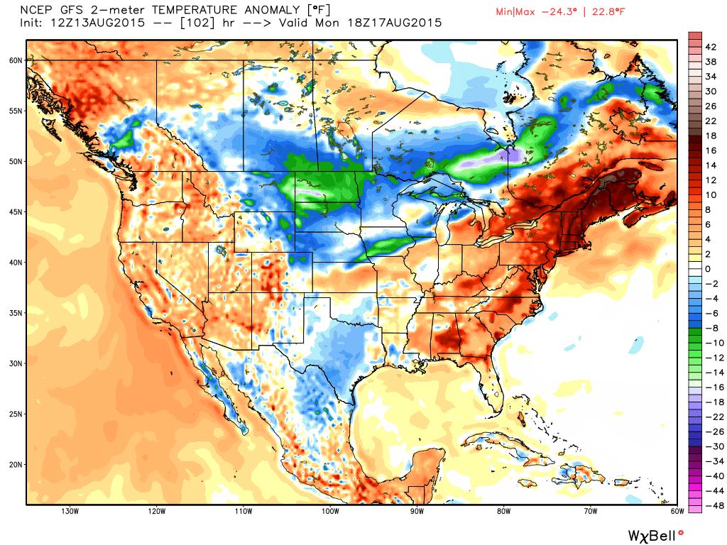The set up is going to keep the heat bottled up out west. We’ll likely see an upper level low keep cooler air funneling in from Canada across the northeast. This means we’ll likely even see some unsettled weather (showers) from time to time.