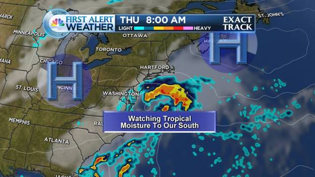 Right now, it looks like clouds increase on Wednesday night. By Thursday morning we could have a period of rain lurking just to our south.
